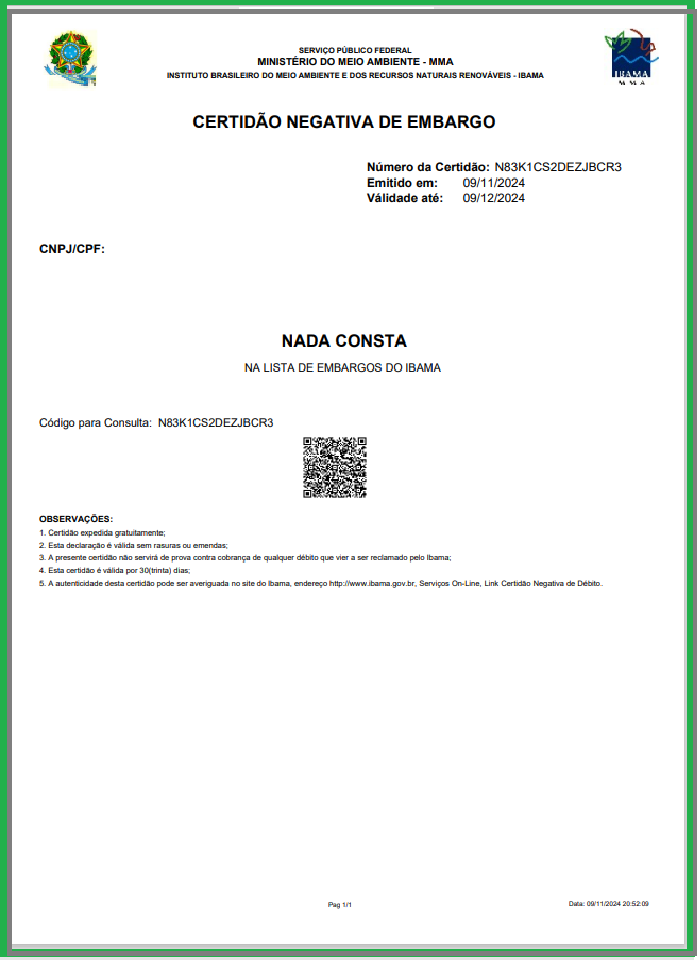 A Certidao de embargos do Ibama, serve como uma certificação de qualidade de uma empresa ou organização frente a questões ambientais.
