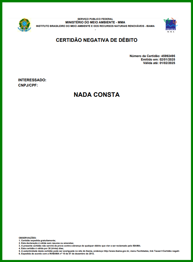 CERTIDAO NEGATIVA DE DEBITOS DO IBAMA CND