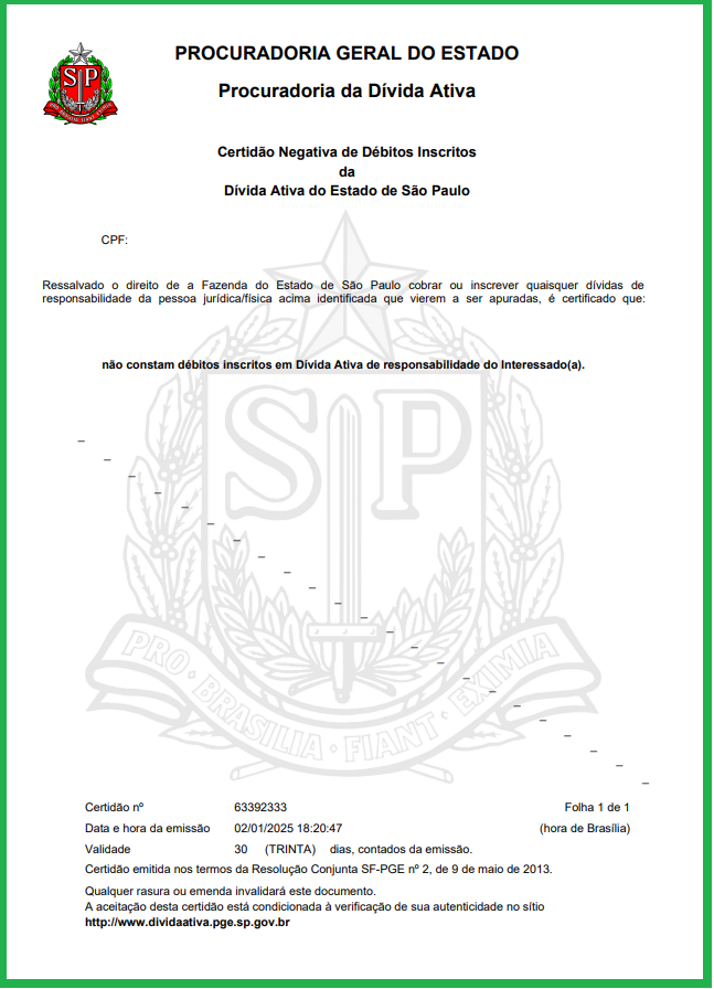 Esta certidão acusa ou não, debitos inscritos em dívida publica do Estado de São Paulo ou Rio de Janeiro, conforme sua seleção.